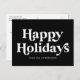 Modern helgdag-vykort som visar "Glad helg" på framsidan i vitt, stil-bokstäver med svart bakgrund eller färg efter eget val. Anpassa framsidan av vykortet för helgdag som inte är fotot genom att lägga till ditt namn/ditt företag namn, året eller annan anpassningsbar. Baksidan av vykortet innehåller ditt returadress- och anpassningsbar-meddelande i festive black text. Designad att samordna med vår Retro Typography-kortsamling.