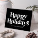 Modern Julhälsningar kort som visar "Glad helg" på framsidan i vitt, stil med svart bakgrund eller färg efter eget val. Anpassa framsidan av det Julhälsningar kortet genom att lägga till ditt namn/ditt företag namn, året eller annan anpassningsbar. Lägg till ditt anpassningsbar-meddelande på kortets insida eller lämna det tomt om du vill skriva ditt eget. Kortets baksida har en vit halvcirkel mönster med svart bakgrund. Designad att samordna med vår Retro Typography-kortsamling.