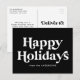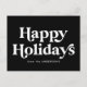 Modern helgdag-vykort som visar "Glad helg" på framsidan i vitt, stil-bokstäver med svart bakgrund eller färg efter eget val. Anpassa framsidan av vykortet för helgdag som inte är fotot genom att lägga till ditt namn/ditt företag namn, året eller annan anpassningsbar. Baksidan av vykortet innehåller ditt returadress- och anpassningsbar-meddelande i festive black text. Designad att samordna med vår Retro Typography-kortsamling.