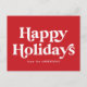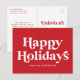 Modern helgdag-vykort som visar "Glad helg" på framsidan i vitt, stil-bokstäver med röd bakgrund eller färg efter eget val. Anpassa framsidan av vykortet för helgdag som inte är fotot genom att lägga till ditt namn/ditt företag namn, året eller annan anpassningsbar. Baksidan av vykortet innehåller ditt meddelande om returadress och anpassningsbar i festive red text. Designad att samordna med vår Retro Typography-kortsamling.