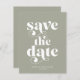 Modern Snyggt Typography Bröllop spara datum i modern neutralt boho shade av sage grönt. Perfekt för att ge dina framtida gäster kännedom om din lycklig-händelse! Kontakta oss på cedarandstring@gmail.com om du behöver hjälp med designen eller matchande produkter.