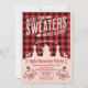 Julinbjudan till en gammaldags ugglat Party med rött och svart fladdermöss och snögubbar, renar och träd.