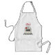 Ett förkläde som presenterar en illustration av en retro beige ugn med en röd kruka som överst sitter. Ugnen är på ett svartvitt golv. Personifiera texten på bästa.
