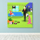 Det här Retro Urban-julparet är ett finare Kanvastryck i tecknaden teckning i en elegant fyrhjulig lägenhet som alla är dekorerade för helgdagarna med högtstående ljus och en kitschy, rosa, Julgran, komplett med prydnadsföremål och en gult stjärna. I lägenheten finns en grönt golv och en grönt tegelvägg. På väggen finns fyra klassiska Kanvastryck av filmregissören Martini, som också finns i Zazzle-butiken av StrangeLittleOnion (tips, tips!). Tre av utskrifterna har turkobakgrunder och en är på en svart bakgrund. Under kanvastrycket är det ett blått, modernt soffa i mitten av århundradet. En sofistikerad, korvsköld skönhet är sitta på soffa. Hon har en pulserande, röd klänning och tomtehatt. I ena handen håller hon en sprit av mistleton bunden med en röd båge. På andra sidan rummet finns en suave, lång, mörk och stilig man. Han bär en svart kostym, vit skjorta och röd slips. Å ena sidan håller han ett vinylskivalbum och å andra sidan håller han ett roligt albumtäcke. På golv finns det en orange som håller en grönt och en svart rekordspelare. Proppad mot ottoman är ett annat albumomslag med en post som rullar ut från sidan. Det finns också tre färgstarka vinylalbum som är spridda runt golv. Bakom mannen kan vi genom att skjuta glasdörrar se snö falla på en grönt balkong och staden nedanför. En vit katt som bär en röd båge runt nacke är genomträngd på balkongans kant. Förutom katten finns det en brinnande stadskylin som är komplett med skyscraper och en gult måne. Om det är så den andra halvan lever, registrera mig!