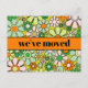 Nytt adress kort för Retro Vår Blommigt/Vi har flyttat-kort. Cute, vår, glada blommor med en vintage av roligt estetisk och 1960-talets vibe, i söt, smart pastel färg, med orange. Du kan anpassa text och personlig. Av Kierkegaard Design Studio.
