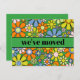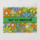 Nytt adress kort för Retro Vår Blommigt/Vi har flyttat-kort. Cute, vår, glada blommor med en estetisk vintage i roligten och en 1960-talsvib på 1970-talet, i söt, smart pastel färg, med grönt, chartreuse, rosa, blått och orange. Du kan anpassa text och personlig. Av Kierkegaard Design Studio.