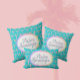 Denna Handflatan Vår Blue dekorativ kudde med pastel handflatan träd är så mycket roligt! Mjuka nyanser i multifärgad på en pulserande turkobakgrunden gör att den moderna vibe som finns i ökenoasis Handflatan Vår i Kalifornien i mitt århundrade. Du kan redigera texten med ditt eget meddelande!