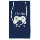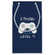 Designad för att matcha vår Level Up-födelsedagsfest inbjudan och våra tillbehör har den här återspelarpresentpåsen en spelkontrollbild på en marin blå bakgrund med "[Namn] har nått nivå [ålder]" i vintage digital stil-text.