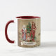 Fin vintage illustration av en äldre kvinna, en ung kvinna och en flicka. En underbar scen med 3 generation som dekorerar Julgran på en återgrunge bakgrund och ram för en åldras eller vintage. Designen har ett menyfliksområde för rulla av vintage som du kan anpassa till den här eleganten och tidlös helgdag mugg.