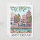 Check out this colorful Amsterdam Netherlands vintage travel floral artwork on a Flat Greeting Card that is featuring the canals (grachten) and stunning architecture of the dutch capital in the Netherlands. This product makes a great travel souvenir and gift idea for every tourist and visitor of the dutch travel destination. Make this product your own and buy now.