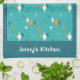 Retro Vintage Atomic Teal Starburst Mönster Namn Kökshandduk