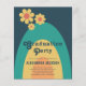 Fira hennes examen med denna coola retro 60-70-tals vintage jordiga färger orange akva senapsgul blå valv exanimationsinbjudan. Med enkel tusenskönadesdesign och lättanvända mallar sätter denna anpassade inbjudan tonen för en cool groovy hippie-examensfest. Originalkonst av konstnären Catherine Sweetman