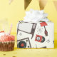 Retro, vintage hushållsartiklar, t.ex. TV-apparater, skivor, inspelningsspelare, radioutrustning och lampor på inslagning pappert. Roligt för pension party eller tillfälle.