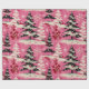 Den här årgången med julomslutning har en charmig och unik utformning med en mjuk bakgrund för rosan som visar en varm och nostalgisk känsla. Rosa nyck framkallar en känsla av stollig och feminitet, som skiljer den från den traditionella och de gröntar som vanligtvis förknippas med jul. Spridningen över den rosa arbetsytan är ömtålig och hårt ritad svart och vitt Julgranar. Dessa träd varierar i storleka och stil och skapar ett synligt intressant mönster som fångar kärnan i ett vinterland. De svarta konturerna i träd ger en klassisk beröring som påminner om illustrationer av vintagar.