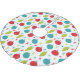 Lägg till lite ljusa och festliga träd i Julgran med den här mönstrade träd-kjolen. Den innehåller enkla illustrationer av julprydnadsföremål i ljusröd, turkosblå och limmargrön tillsammans med koordinerande asterisk eller stjärnformer mot en vit bakgrund. Bilden har ett lätt besvär stil för att vintagen ska se ut.