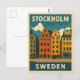 Upptäck Skandinaviens elegans med detta vintage resor-inspirerade vykort som innehåller Stockholm, Sverige. Med stadens historiska arkitektur och tidlös charm i klassiska retrotoner fångar biet Sverigens vackra huvudstad.
