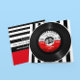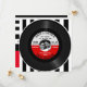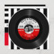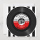 Retro Vinyl Record Photo Save Date Template in färg of black red and white dubbla-sided design. Alla standardtexter kan anpassas helt och hållet med dina egna tillfälle-skrivningar och du kan också ändra typsnitt, storlek och färg på texten. Exempelbilden är till för att du ska kunna ersätta den med ditt favoritfoto.