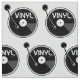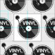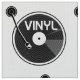 En svartvit vektorillustration av en vinyl-LP, spela in på ett röstbord eller spela in. Protokollet har vinyl skrivet på det.