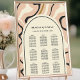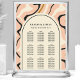 "Retro Swirl Arch Wedding Seating Chart" är ett funktionellt konstverk som ger organisation med en chic touch. Bakgrunden av mjuk creme står i kontrast till ett iögonfallande virvelmönster i nyanser av rosa, svart och guld, som fångar en vintage-känsla med en modern twist. Den välvda designen inramar elegant parets namn och sittordningen och guidar gästerna till sina tilldelade bord med lätthet och stil. Denna sittordning är det perfekta tillskottet till ett bröllop som firar både det tidlösa förflutna och spänningen i en delad framtid.