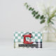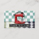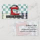 Bagaren, bagerit, konditorvisitkortar med den retro stativblandaren, bunken och drevkarlar mot en kontrollerad countertop för för mönsterkökbacksplash och diamant i vattenfärg utformar, perfekten för hantverkaretårtor, kakor och annan bakad godaaffär.