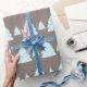 Höjd och snyggt julomslag papprare, med en pastellblå Julgran-design på en varm grått-bakgrund. Aqui Poppy har julkort som kompletterar den här designen i vår butik.