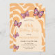 Retro Wave Butterfly Peach Orange Birthday Inbjudningar