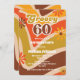 Retro inspirerade Groovy till en 60-årsinbjudan med retro vågar mönster, daisy och boho typsnitt och färg.