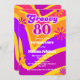 Retro inspirerade till Groovy 80-årsinbjudan med retro vågar mönster, daisy och boho typsnitt och färg.