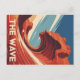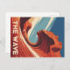 En slående reflektor-stil poster "Wave", en unik sandstensformering av sten med snurrande rött och orange mönster, som belyser den naturliga skönheten i ökenlandskapet under ett tydligt blå himmel.
