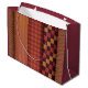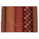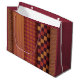 A vivid blend of midcentury modern aesthetics and bold geometric shapes in warm earth tones. Featuring wavy stripes, checkers, dots, and vertical lines in burnt orange, burgundy, and mustard. Ideal for vintage-inspired decor, wrapping paper, textiles, or statement home accents. This seamless pattern evokes both retro charm and modern flair, appealing to lovers of the 60s and 70s style revival.
