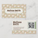 This stylish business card features a prominent customizable QR code centered within a trendy retro-inspired wavy pattern. The mid-century modern aesthetic is perfect for tech-savvy entrepreneurs, holistic therapists, creative professionals, or small business owners looking to integrate digital functionality with an artistic touch. Use the QR code to link instantly to your website, portfolio, social media, or appointment booking.