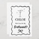 Fråga på ett stilfullt sätt med detta retro-chika brudtärna-förslags kort! Med en funky vågig kant, klassiskt martini glas och en lekfull slips, är denna livfulla inbjudan perfekt för att fråga, “Vill du vara min brudtärna?” på ett roligt och oförglömligt sätt. Perfekt för både vintage-älskare och moderna brudar!