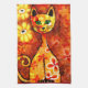 Retro Whimsical Cat Kattunge Blommigt Orange Gult Red