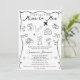 Retro Funky Whimsical Hand plockade Miss till Mrs Inbjudningskort för möhippan - en möhippa med resetemat börjar med ett inbjudan som inspirerar till irrlust. Med krångliga, roligt- och söta illustrationer i hand plockade stil som innehåller ett flygplan, ett pass, förlovning ringar, en bukett av blommor som klämmer champagneglas, ett sött bagage med hjärtan, kamera och solglasögon som alla är adorberade av en viskös ram. Att resa från Miss till Mrs är skrivet i vintage med handskrivet typsnitt. Redigera den här möhippan med din egen händelseinformation. All text är anpassade. På baksidan hittar du ännu fler illustrationer på roligten, t.ex. en glob, karta och bagage. Finns i både tryckt och miljövänlig digital nedladdning, perfekt för att skicka via text, e-post eller social-media.