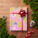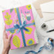 Retro Whimsical Scandinavian Folk Blommigt in Rosa Presentpapper