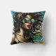 Retro Woman on Beach Tecknad Stil Pop Art Kudde