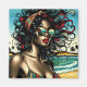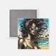 Retro Woman on Beach Tecknad Stil Pop Art Magnet