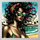 Retro Woman on Beach Tecknad Stil Pop Art Poster