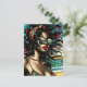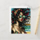 Retro Woman on Beach Tecknad Stil Pop Art Vykort