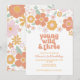 Retro inspirerade till Young Vild och 3 3:e födelsedag med 70:s blommor i stil och boho typsnitt och färg.
