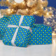 Retrocirklade prickar, cerulenblått och grönt presentpapper