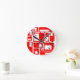 Den här klockan är täckt av moderna fyrkanter med rött och svart stjärnsprängningar i mitten av århundradet. Roligt till vilket rum som helst.