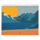 Retroinspirerad bergsbild - röd och blå scen kalender