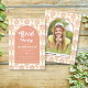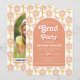 Den här inbjudan i klass 2024 Studenten inspireras av 70-årsåldern med dess retro och pulserande design. Inbjudan visar en persikobåge som fungerar som mittpunkt, justerad med personligens text. Bakom bågen tillför en ljuvlig mönster av blommor i persiko- och gult en gnutta nostalgi. Uttrycket "Grad Party" är djärvt skrivet i ett retrotypsnitt, som fångar nuet av eran. På inbjudningens baksida hittar du ett foto av student som är placerat i bågen, åtföljt av samma charmerande blommönster, som fyller hela estetiken. Skyddet har varit designat med vissa tillgångar från Freepik.com