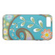 Retro turquise paisley motif anpassningsbar iPhone 6 plus fodral-design med ett paisley-motiv i turkos med brunt kontur och gula blommor på gröntens bakgrund. Den här stil-femininin-formgivningen från retro/vintage är en underbar gåva till kvinnor.