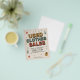 En vintageinspirerad reklamflygblad för en försäljning av begagnade kläder med fet retrotypografi, färgrika grafiska element och illustrerade klädesplagg som blomsterklänning, skjortor och jacka i varma toner.