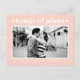 Ändring av planer! Meddela din familj och vänner att er bröllopsdag har blivit uppskjuten med detta foto ändra datum vykort. Det har vit retro typografi på rosaröd bakgrund. Anpassa genom att lägga till era foton, namn, adress och andra detaljer. Detta rosaröda ändra planer vykort kommer också att vara perfekt som ett elopement-meddelande.