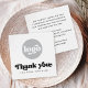 Ett stort tack för branschen som innehåller texten "Tack" i ett stil-teckensnitt. Svart (eller anpassningsbar färg) text på vit bakgrund. Ladda upp logotypen längst fram och lägg till anpassningsbar på baksidan. Du kan byta färg, flytta och ändra storlek på inslag med designen verktyg.