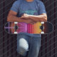 Shred the streets with this synthwave mountain grid skateboard deck. Featuring a classic retro sun setting over a stylized geometric landscape. This design perfectly blends 80s nostalgia with a modern, sharp aesthetic. Whether you're hitting the local skatepark or looking for the perfect piece of wall art for your bedroom, this retrowave skateboard with its rich orange, pink, and purple colors is perfect for anyone who loves the synthwave aesthetic.