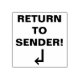 Denna grundläggande gummistämpeldesign har meddelandet "RETUR TILL AVSÄNDAREN!", tillsammans med en pilsymbol. Den kan användas för att indikera att mottagen post har levererats till fel adress eller att mottagaren är okänd och bör returneras till avsändaren.